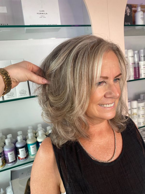 Greys go away!! Permanent regrowth colour with a wash blow dry and style. Pair this package with one of our colour touch ends services for a all-round refresh.